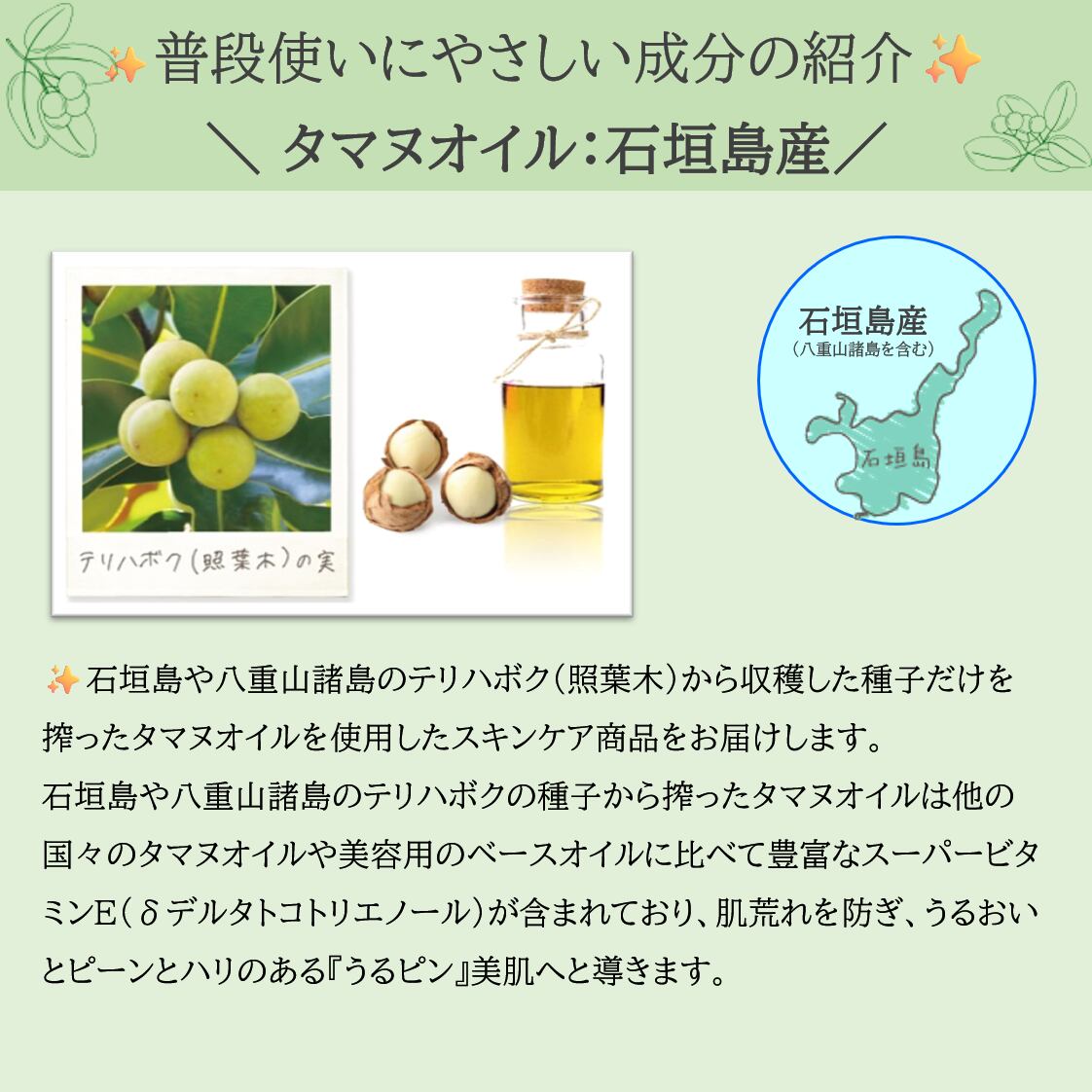 《保湿成分》 *タマヌ(テリハボク種子油)